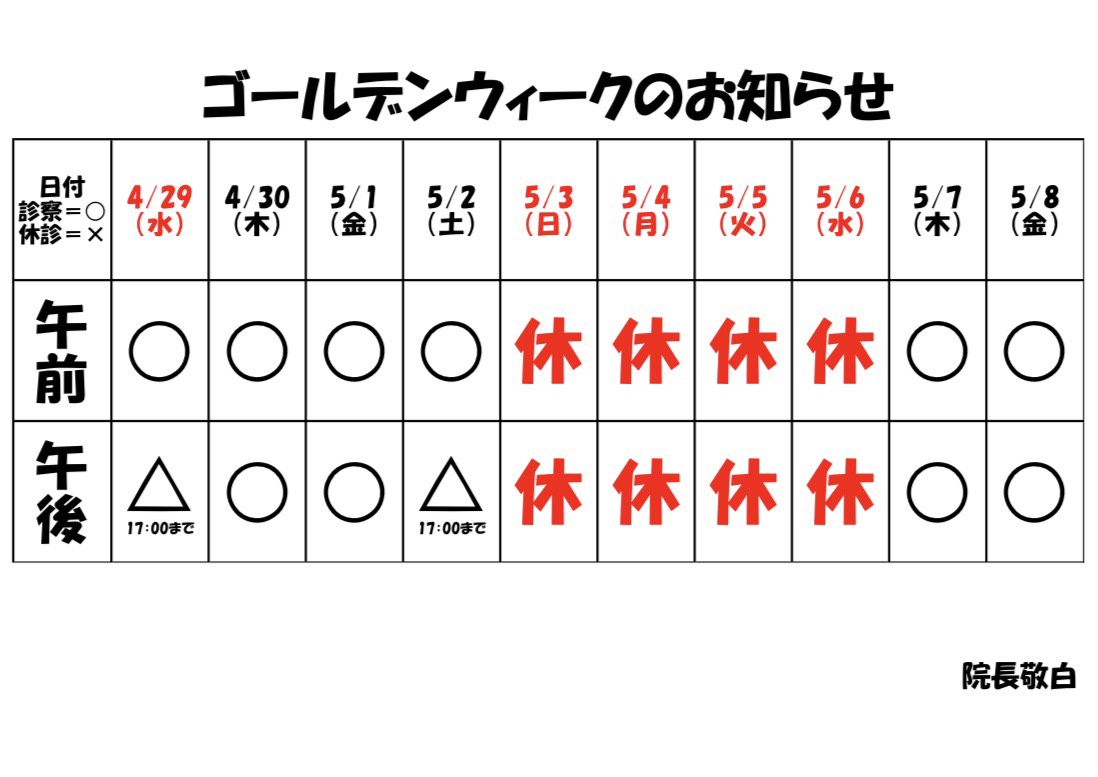 | 9:00〜12:00 | ○ | ○ | ○ | ○ | ○ | ○ | × |
